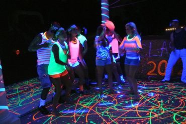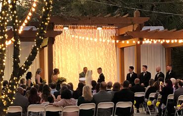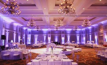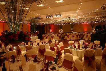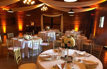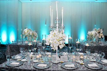 We provide several different types of lighting for special events like weddings, fundraisers, galas, corporate functions, parties, and more! Our lighting services include string lighting of all types such as cafe lighting, market lighting, and Christmas lights. We also provide up lighting, monogram spotlights, spotlights, stage lighting, and even UV black lights.
